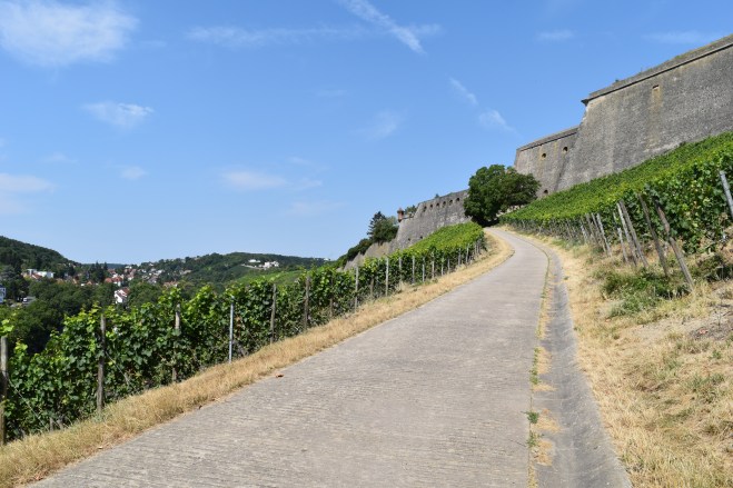 From one mountain top to the other, our hike through the Würzburg hills, vineyards and to a mountain top fortress, oh and a the palace of Würzburg where monument man Lt. Skelton saved the day.